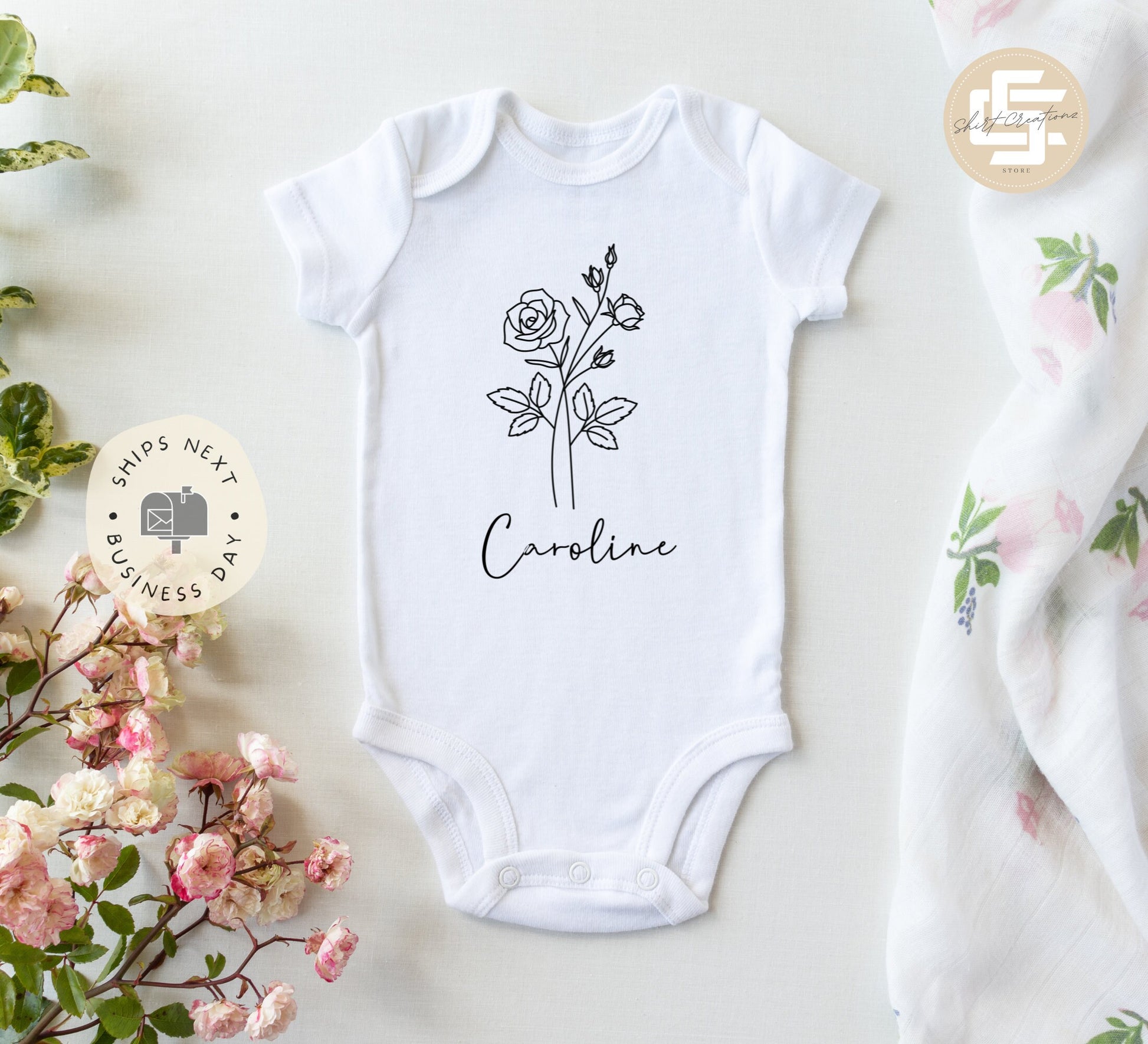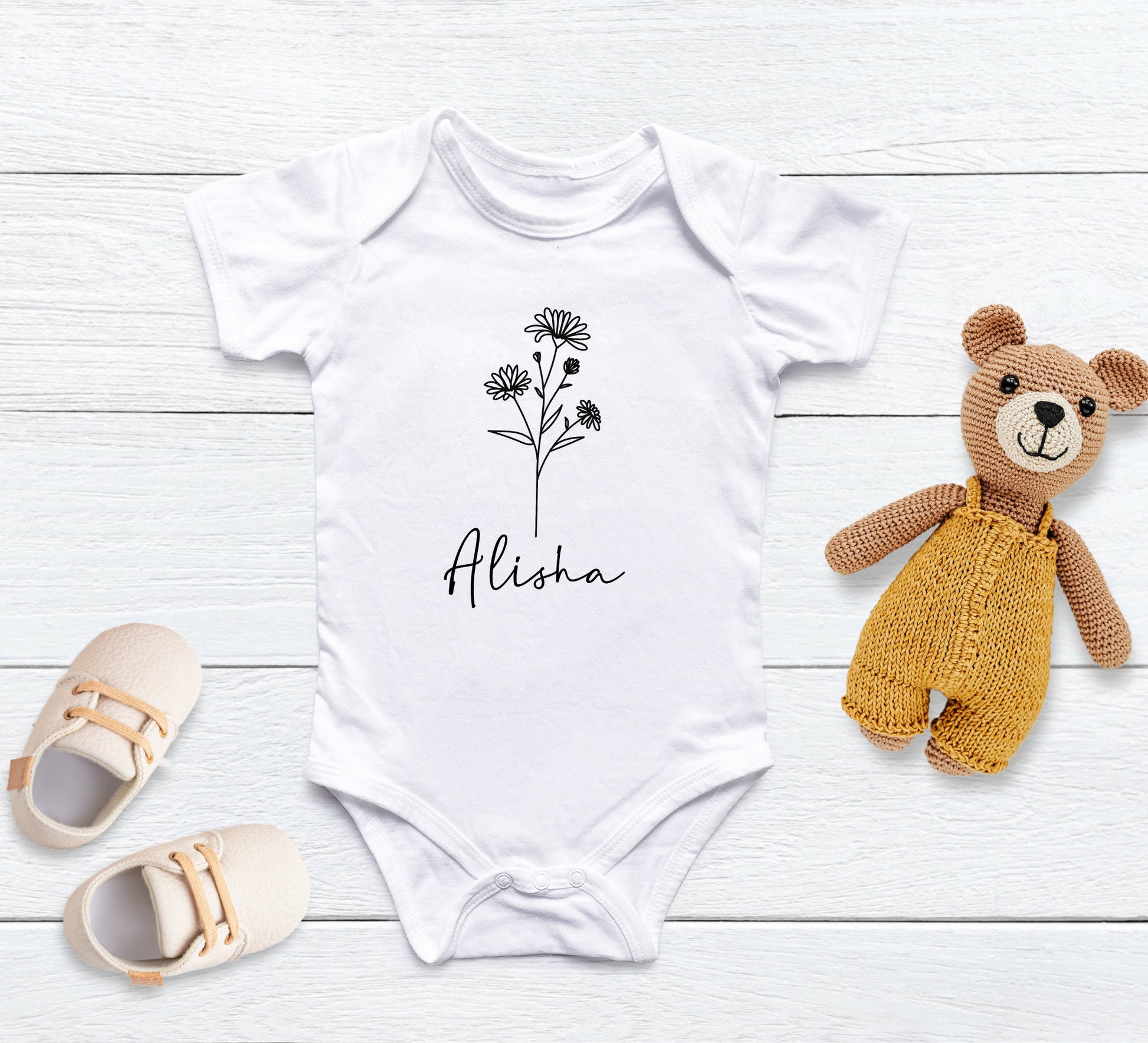 Birth month flower baby Onesie® Personalized birth flower baby Onesie®, cute personalized newborn body suit. newborn baby gift.