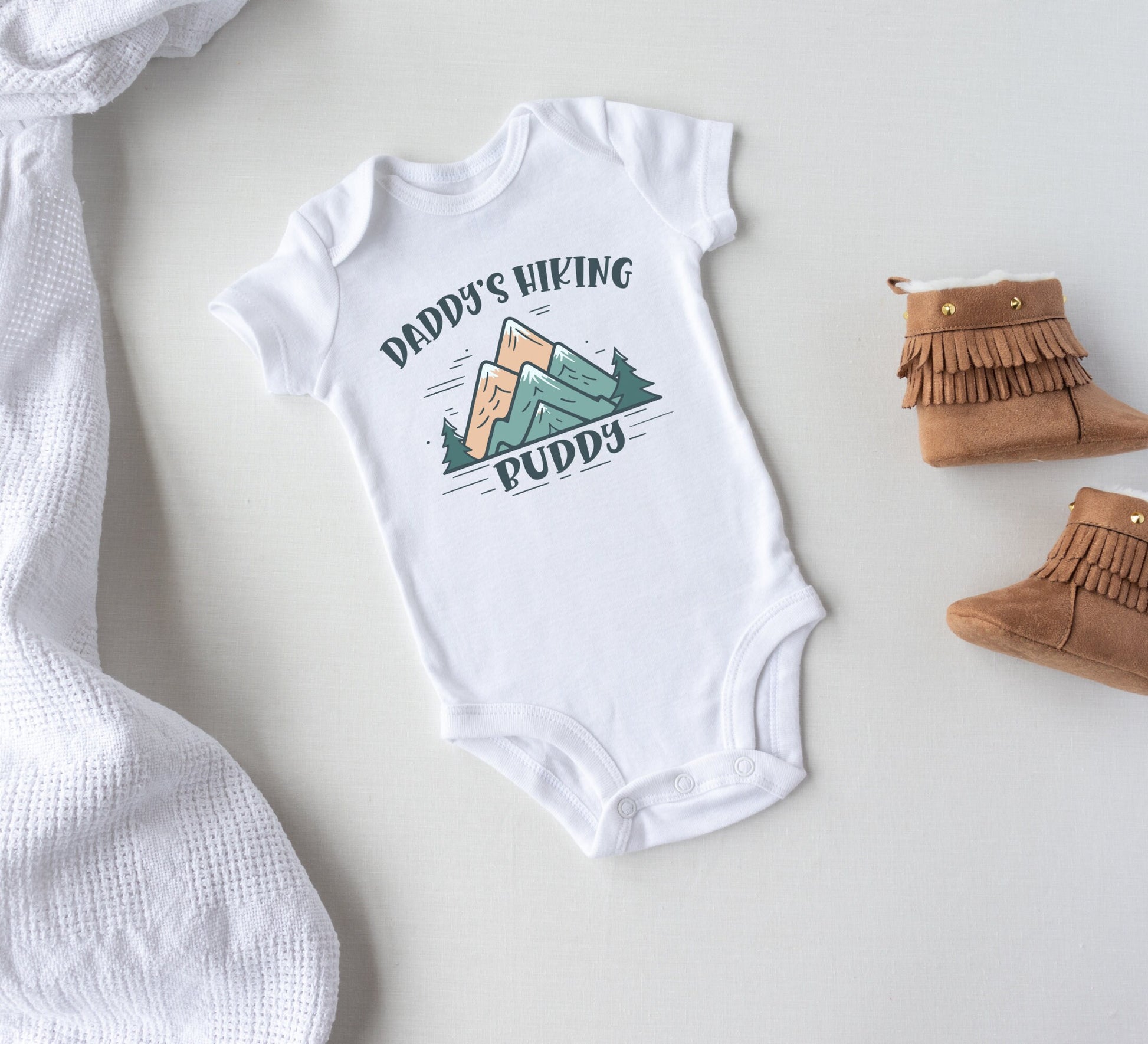 Daddy's hiking buddy Baby Onesie® Hiking baby Toddler tee, Outdoor adventure newborn bodysuit. Hiking with daddy newborn baby gift.