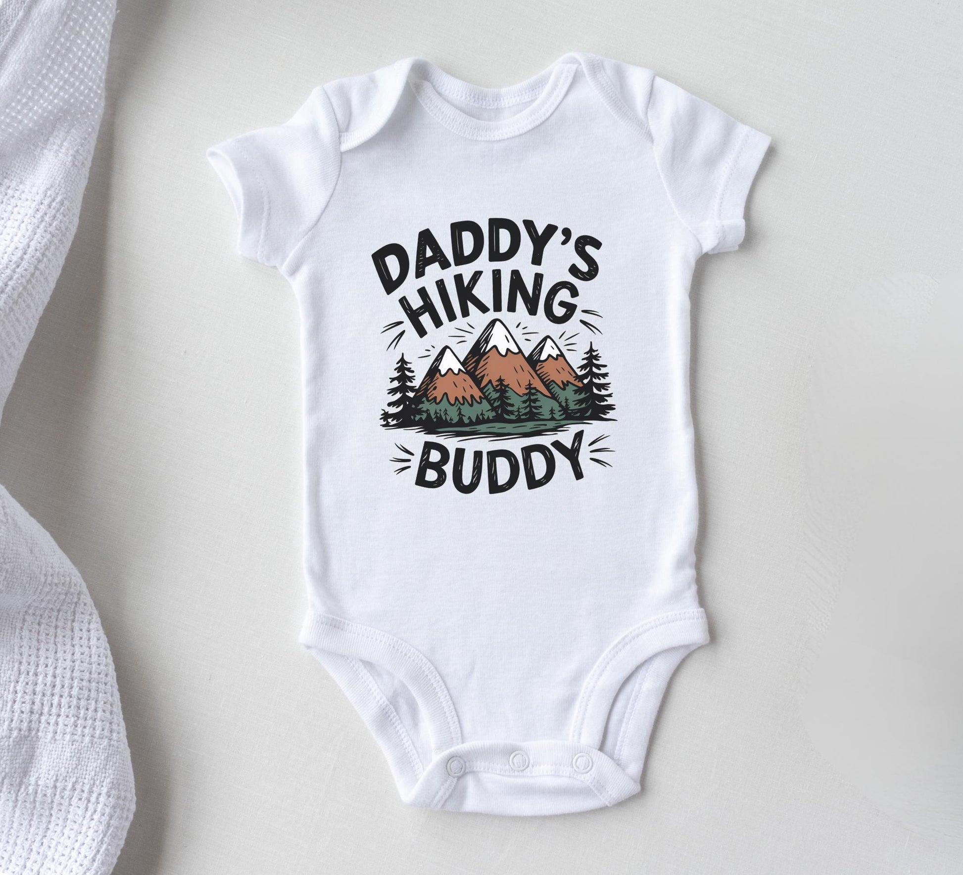 Daddy's hiking buddy Onesie®, Hiking baby body suit, outdoor adventure toddler Tee. Hiking newborn baby gift.