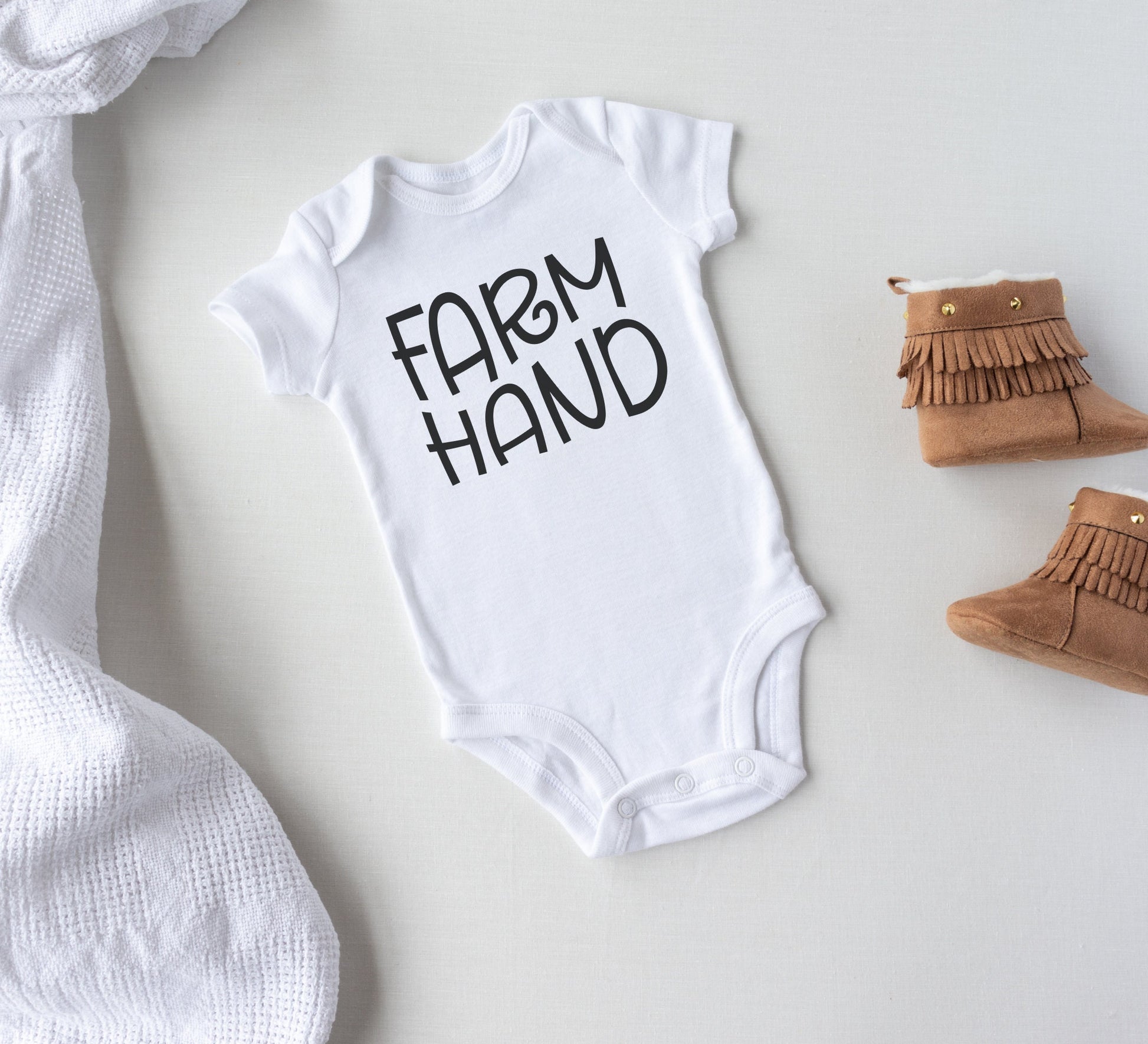 Farm hand baby Onesie® Farmer in training baby Onesie®, Farm help newborn bodysuit, western baby gift.