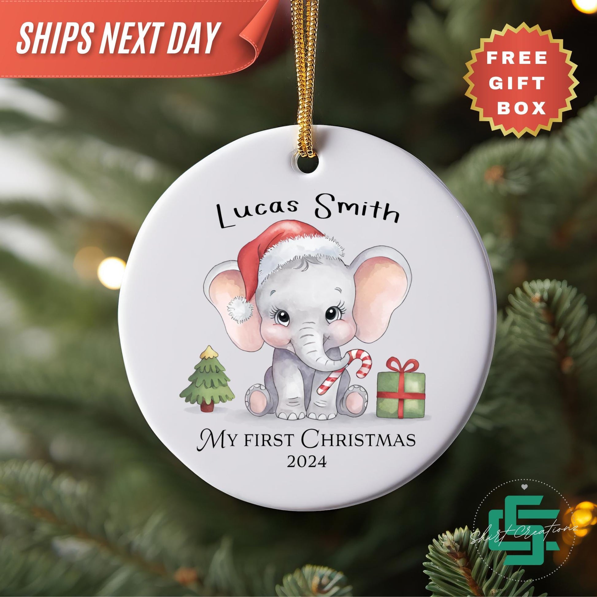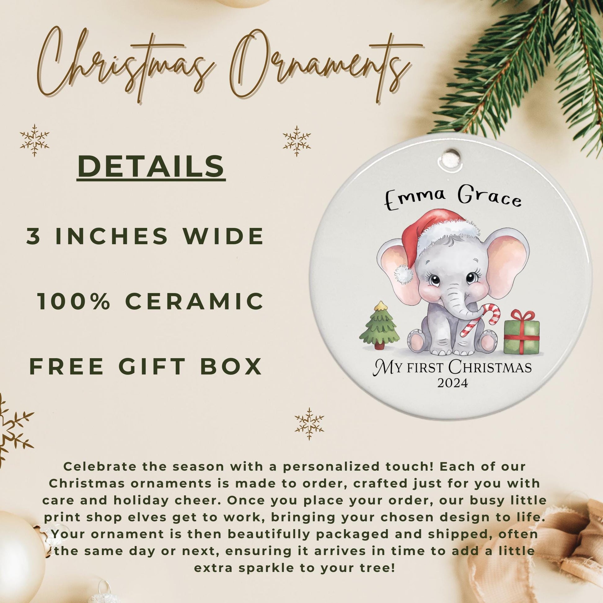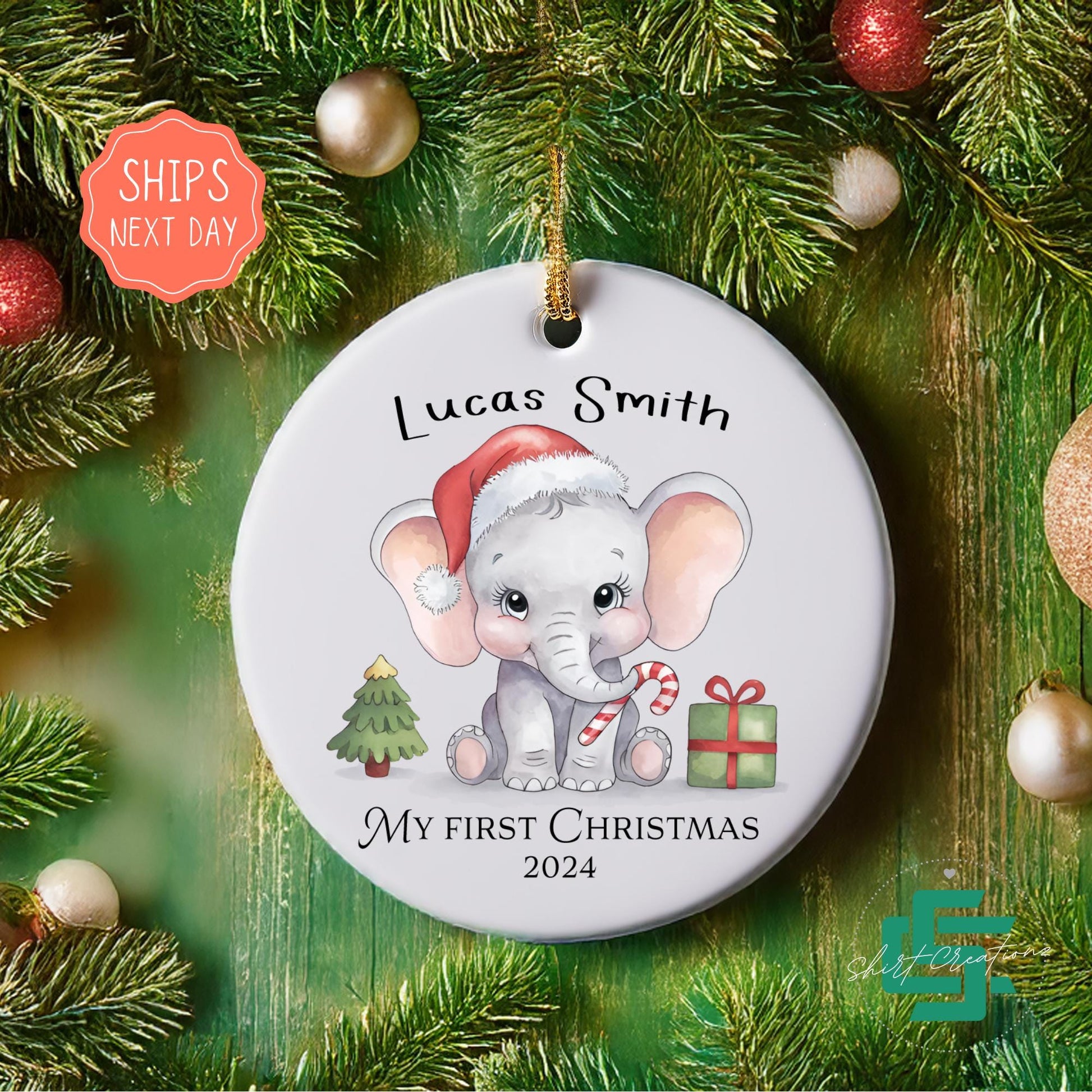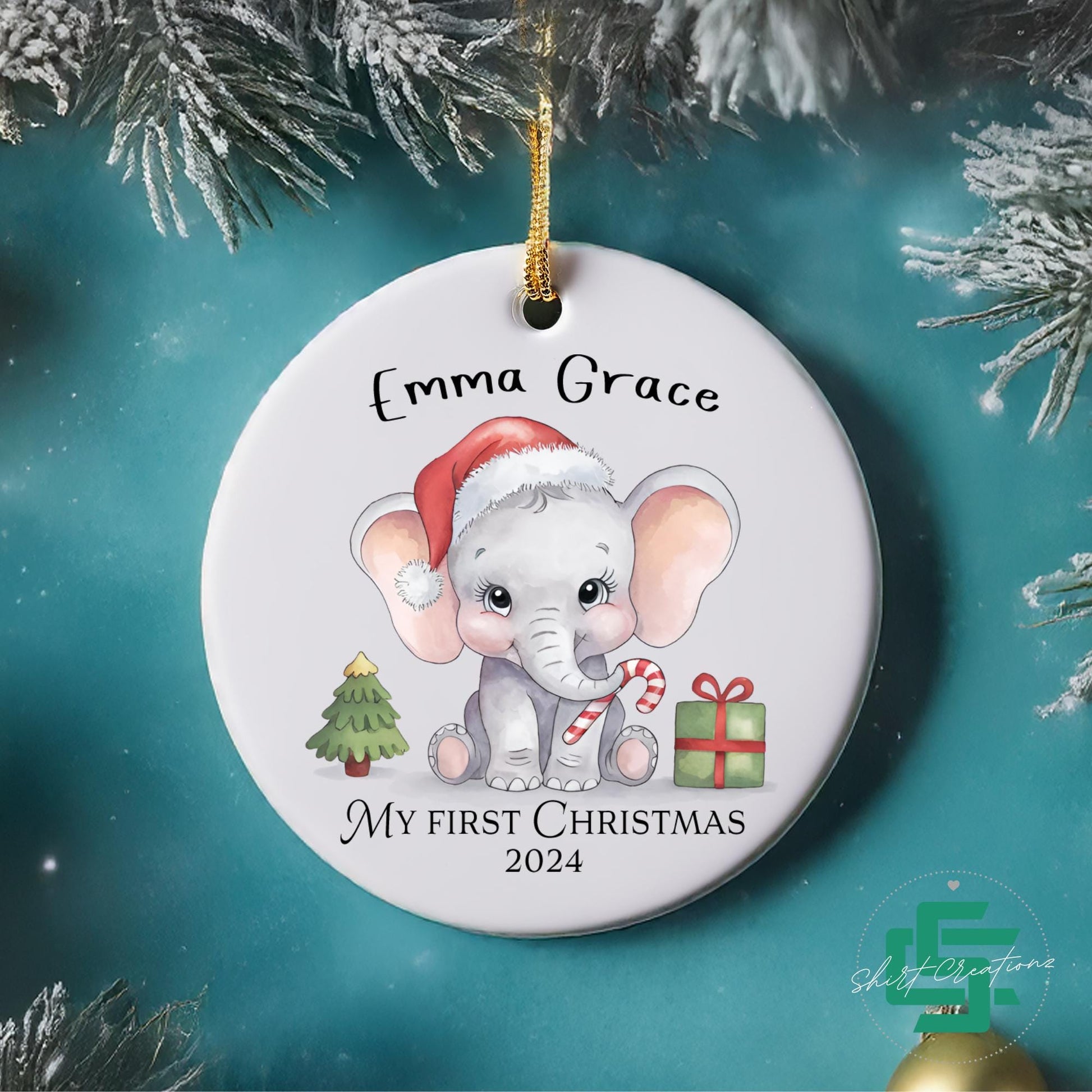 First Christmas baby ornament newborn baby Elephant ornament, Baby announcement Christmas 2024 ceramic ornament.