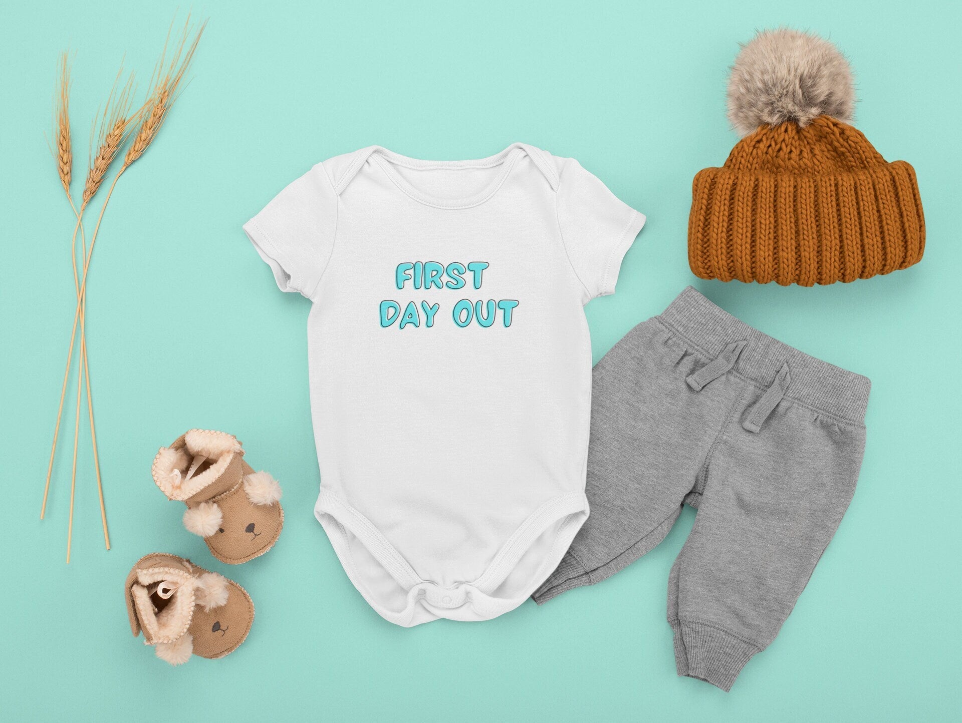 First day out Onesie®, First day baby Onesie®, New born Baby, New born first day baby bodysuit.