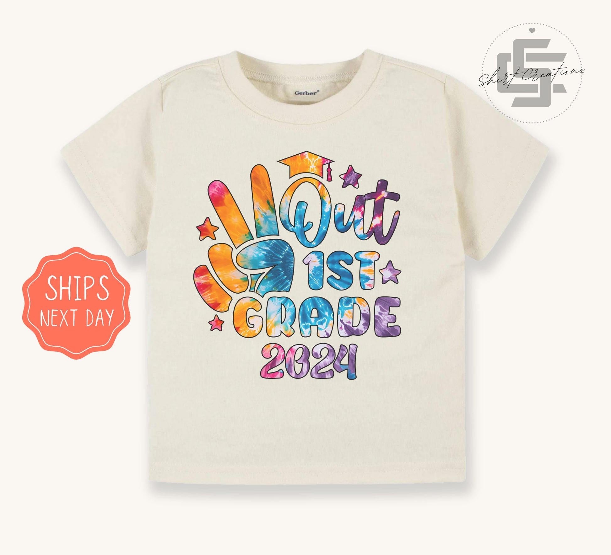 Celebrate your little one's first-grade milestones in style with our charming First Grade Graduation Shirt! Perfect for capturing those precious last-day-of-school moments, this tee adds a touch of excitement to the occasion with its vibrant tie-dye print design. It features a playful tie-dye motif that celebrates their achievements. Available in a variety of sizes, it makes a thoughtful and memorable gift for any first grader. Let your child shine as they bid farewell to their first-grade journey and step into the next chapter of their academic adventure! Order now and make their last day of first grade truly unforgettable.