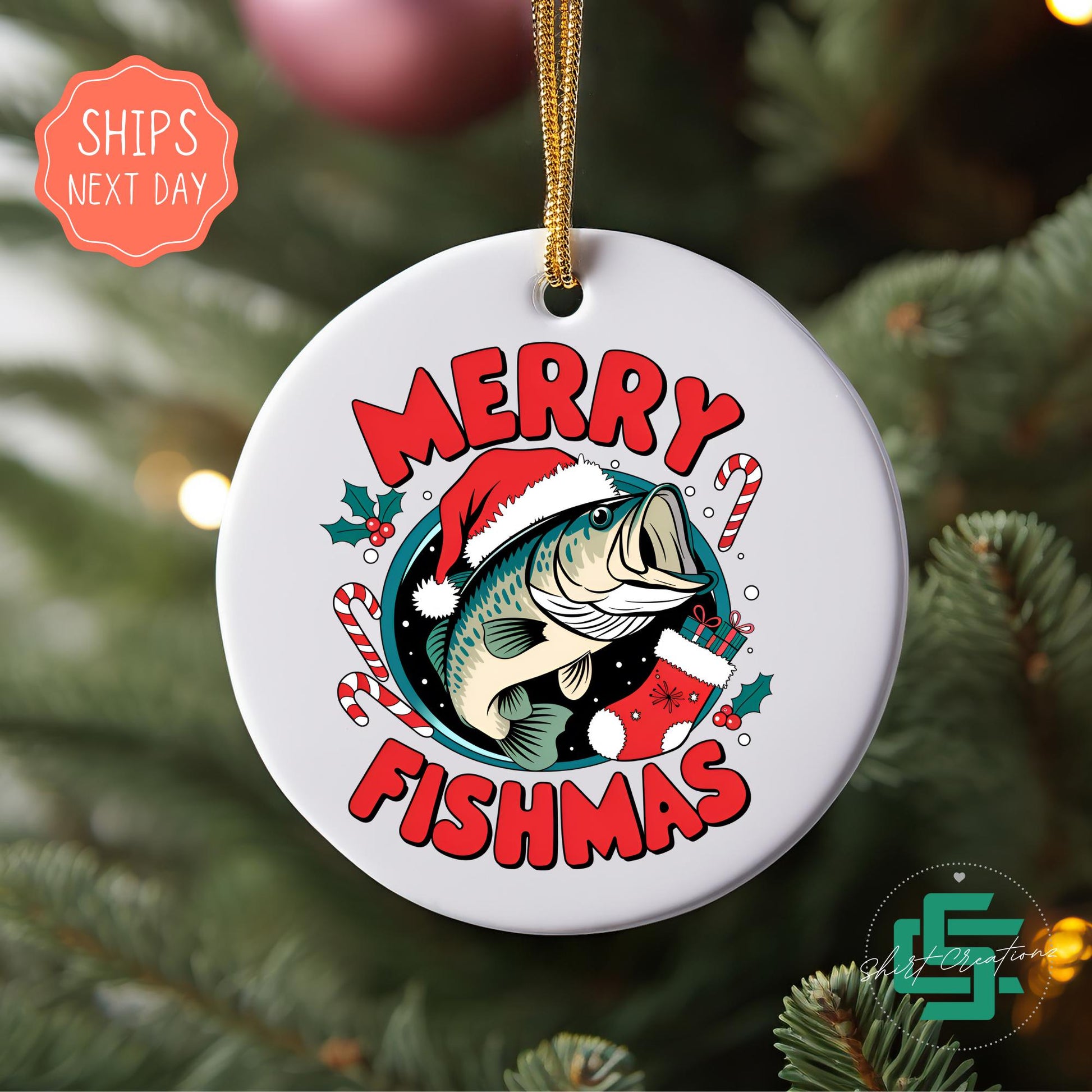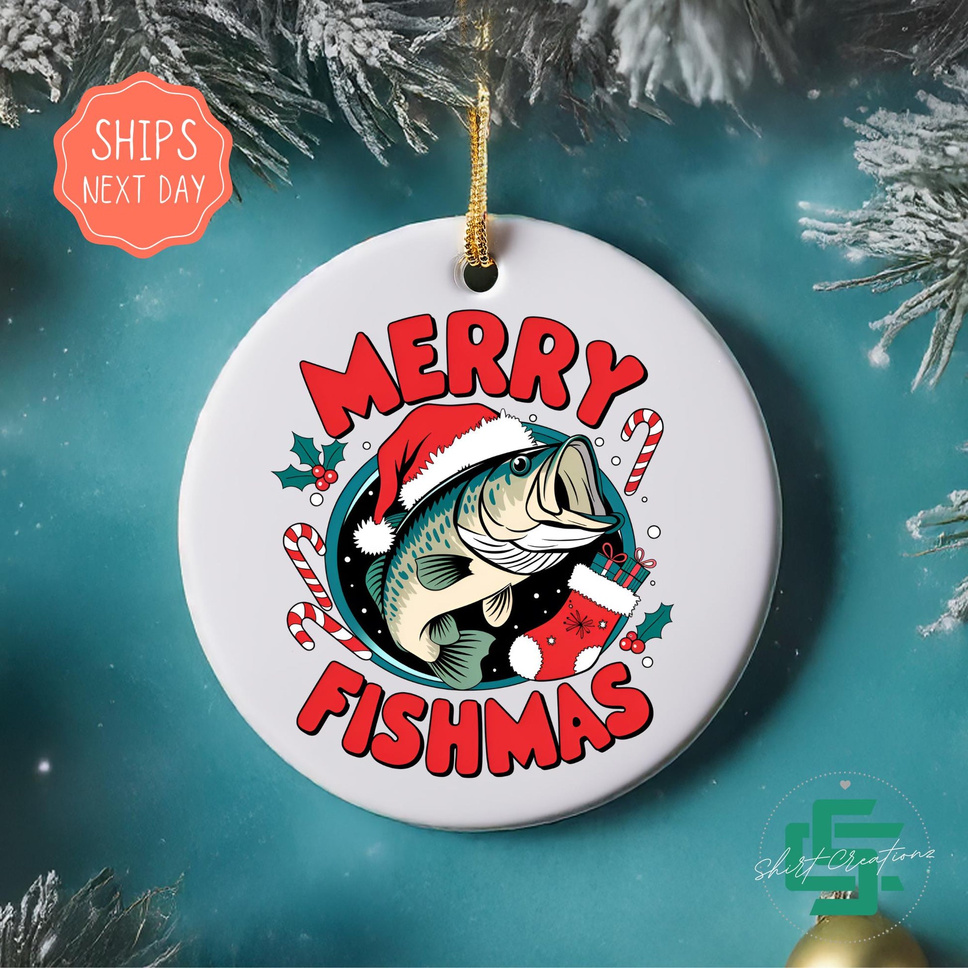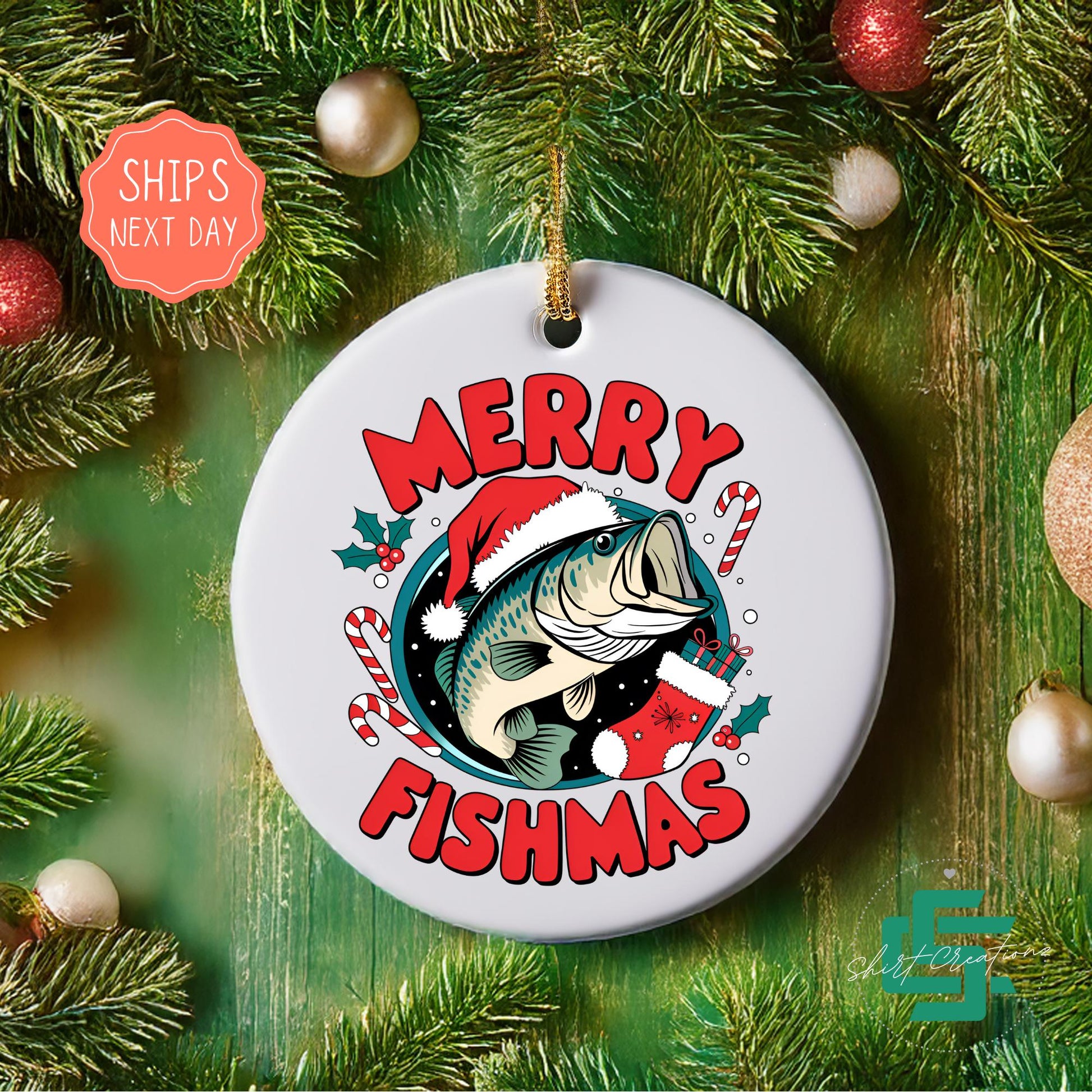 Fishing Christmas ornament fishing dad ornament, Gift for fisherman Christmas 2024 ceramic ornament.