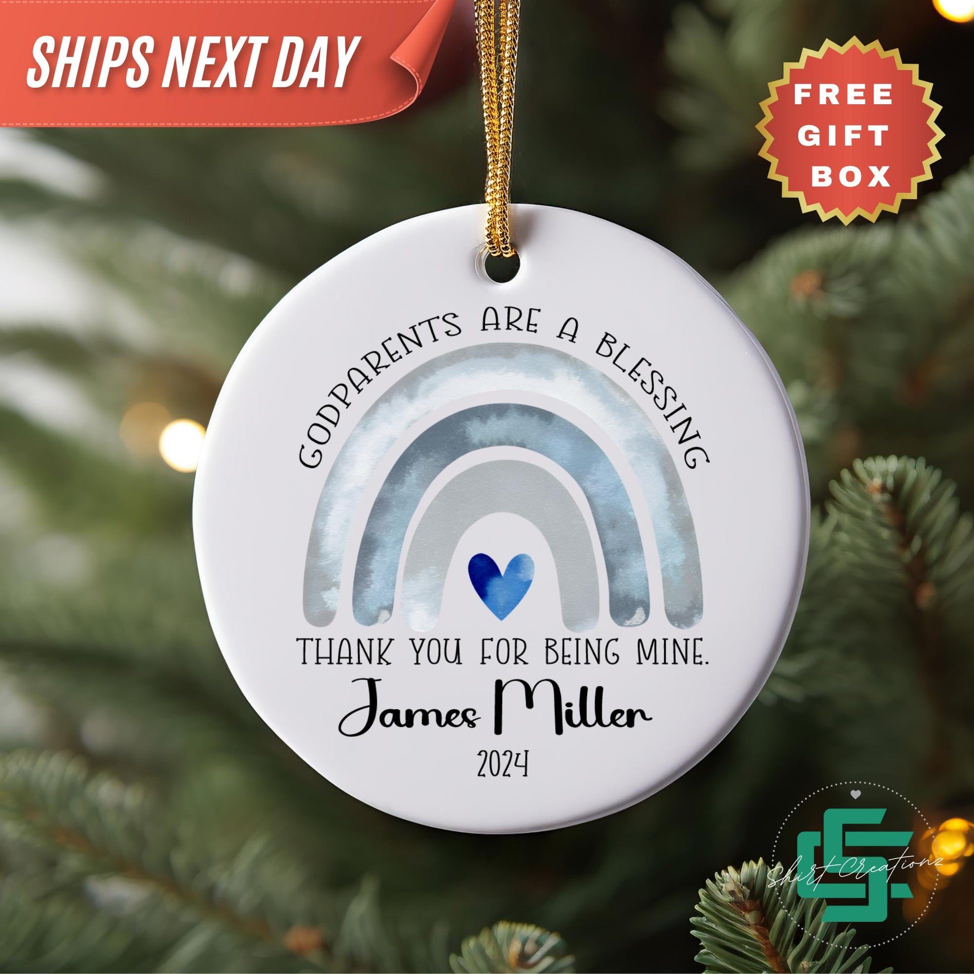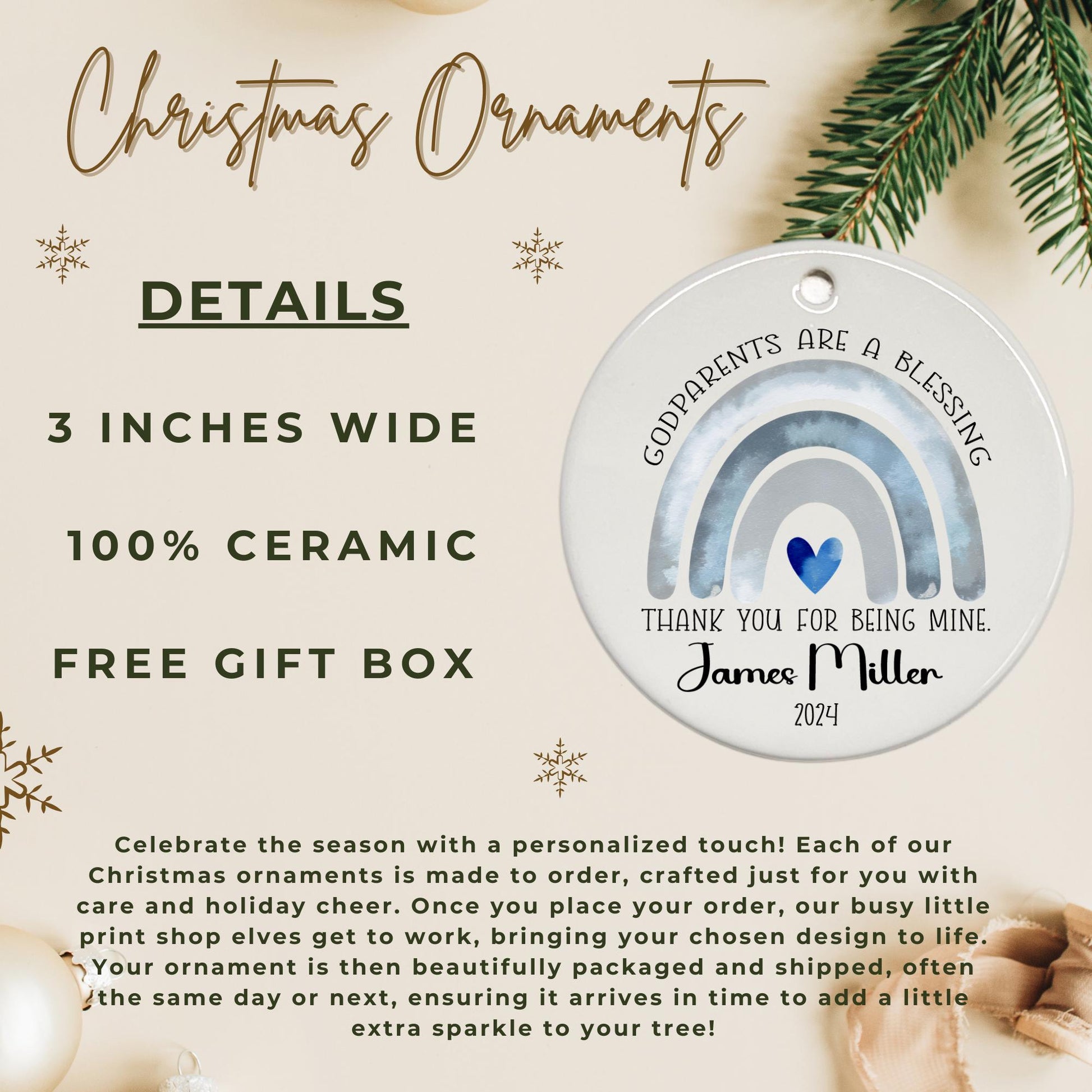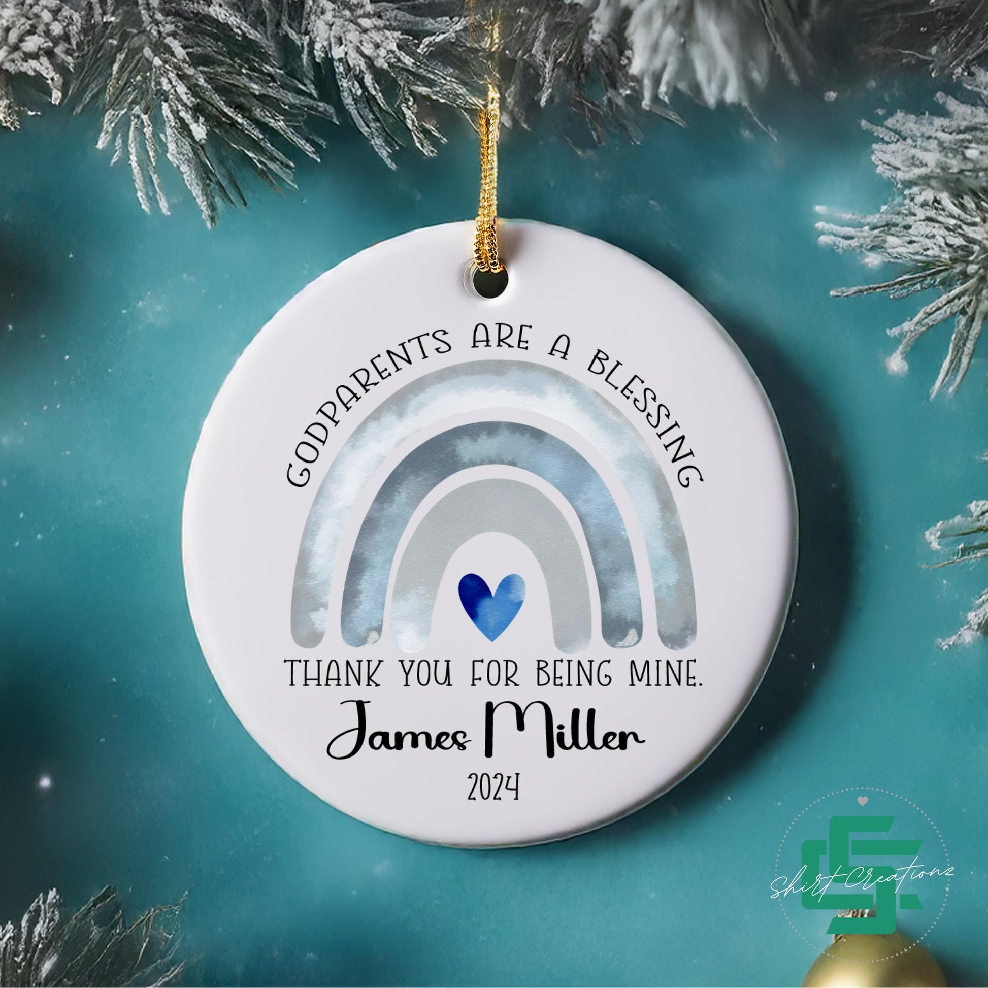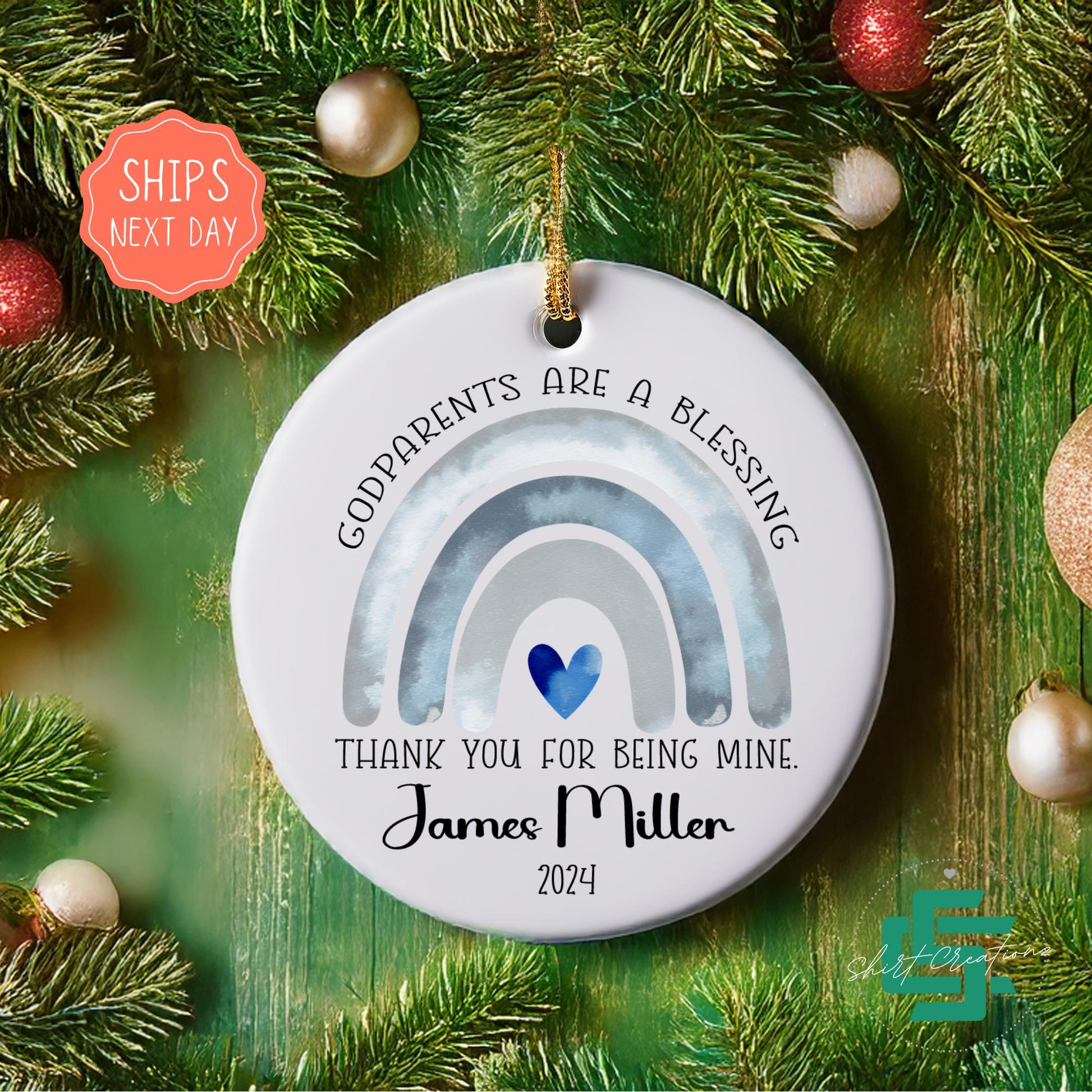 Godparents Christmas ornament newborn baby godmother ornament, godfather announcement Christmas 2024 ceramic ornament.